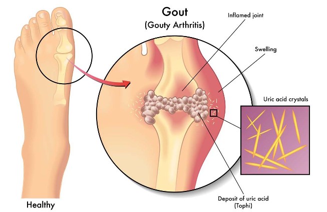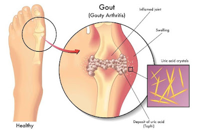 Tingginya asam urat dalam darah merupakan kondisi yang disebut dengan hyperuricemia. Membiarkan asam urat yang tinggi dapat menyebabkan pengkristalan yang mengendap ke persendian, tendon, daj jaringan sekitar.